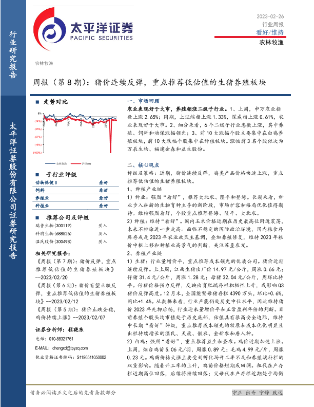 【太平洋证券】【20230226】20230226-太平洋-农林牧渔周报(第8期):猪价连续反弹,重点推荐低估值的生猪养殖板块-16页