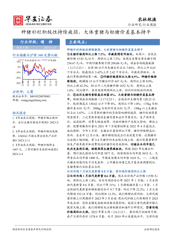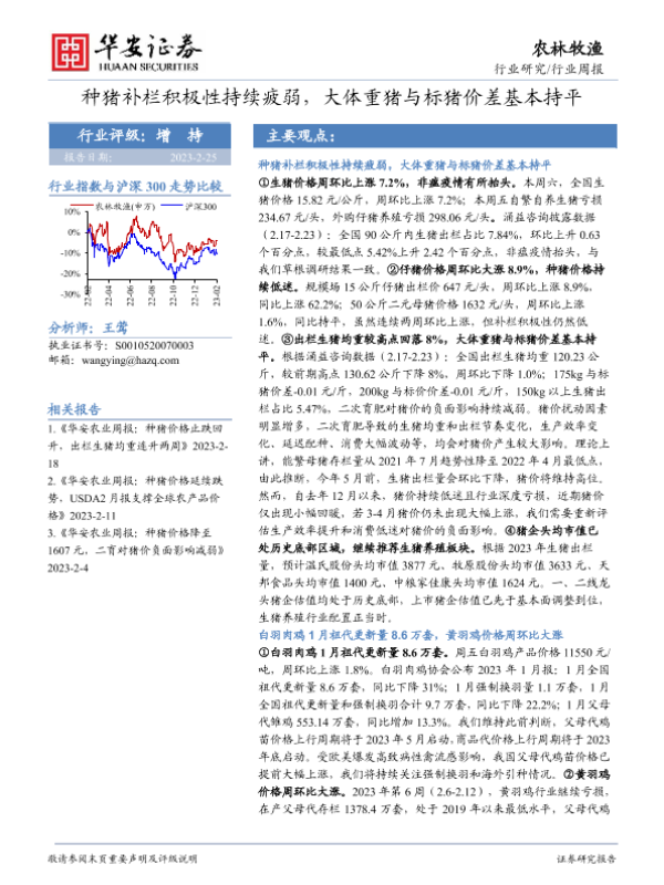 【华安证券】【20230225】20230225-华安证券-农林牧渔行业周报:种猪补栏积极性持续疲弱,大体重猪与标猪价差基本持平-50页