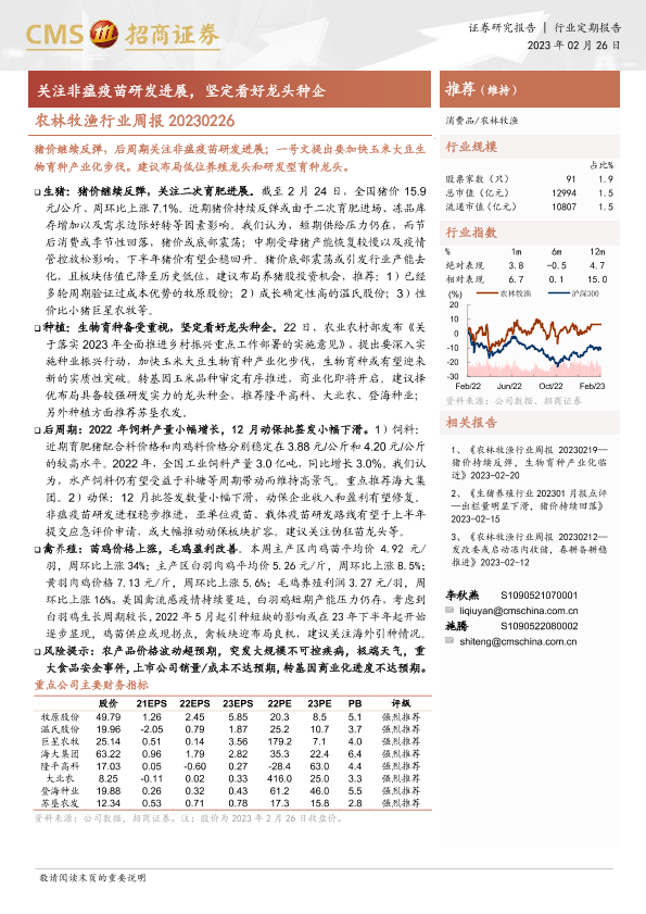 【海通证券】【20230226】农林牧渔行业周报:关注非瘟疫苗研发进展,坚定看好龙头种企-14页