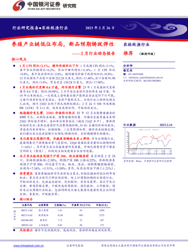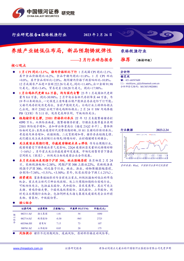 【银河证券】【20230226】20230226-中国银河-农林牧渔2月行业动态报告:养殖产业链低位布局,新品预期铸就弹性-22页