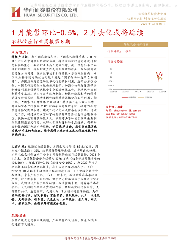 【华西证券】【20230305】农林牧渔行业周报第8期:1月能繁环比-0.5%,2月去化或将延续-25页