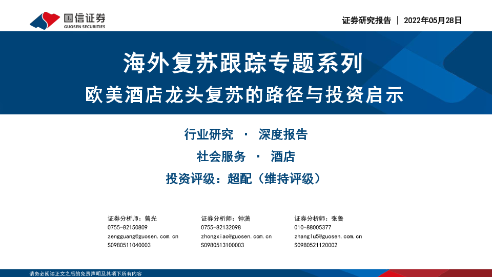 【国信证券】【20220528】社会服务行业海外复苏跟踪专题系列:欧美酒店龙头复苏的路径与投资启示-32页