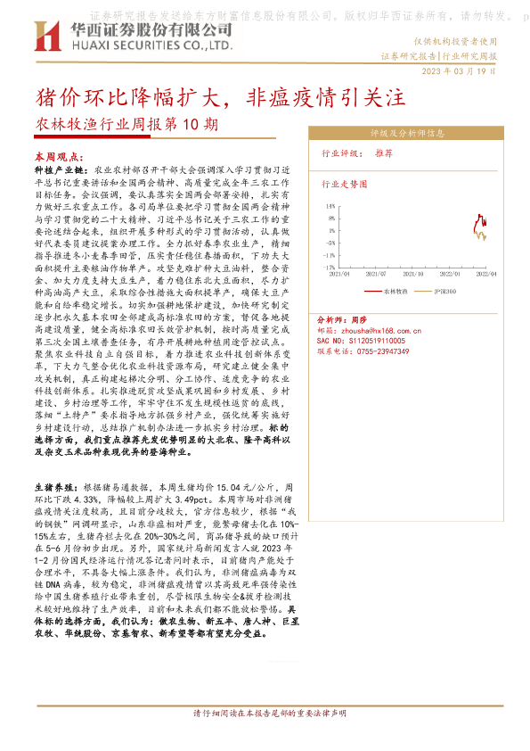 【华西证券】【20230319】农林牧渔行业周报第10期:猪价环比降幅扩大,非瘟疫情引关注-25页