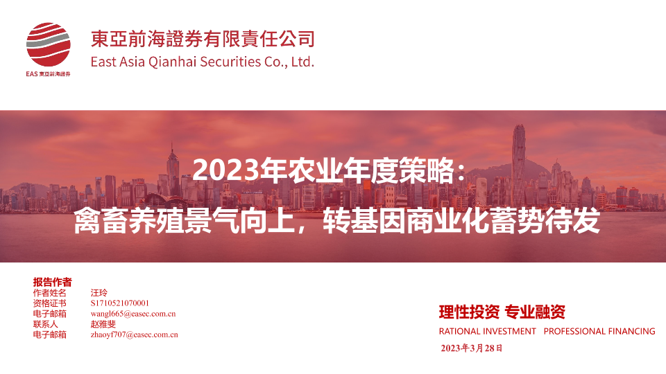 【东亚前海证券】【20230328】2023年农业年度策略:禽畜养殖景气向上,转基因商业化蓄势待发-41页