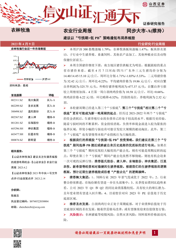 【山西证券】【20230409】农业行业周报:建议以“亏损期+低PB”策略逢低布局养殖股-19页