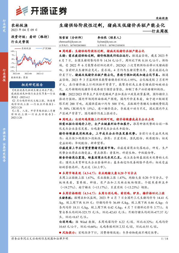 【开源证券】【20230409】20230409-开源证券-农林牧渔行业周报:生猪供给阶段性过剩,猪病及低猪价共驱产能去化-14页