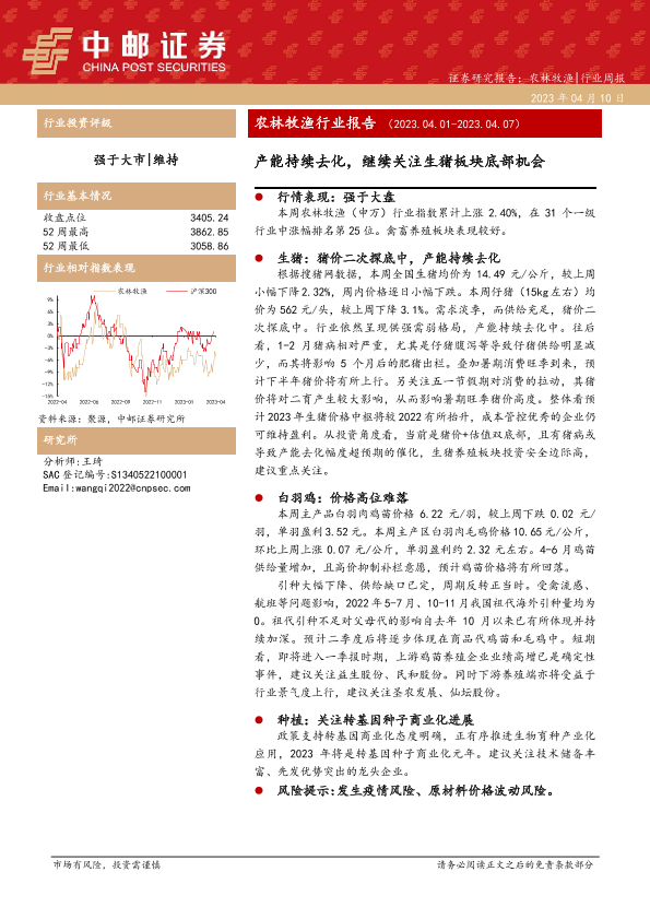 【中邮证券】【20230410】20230410-中邮证券-农林牧渔行业报告:产能持续去化,继续关注生猪板块底部机会-13页