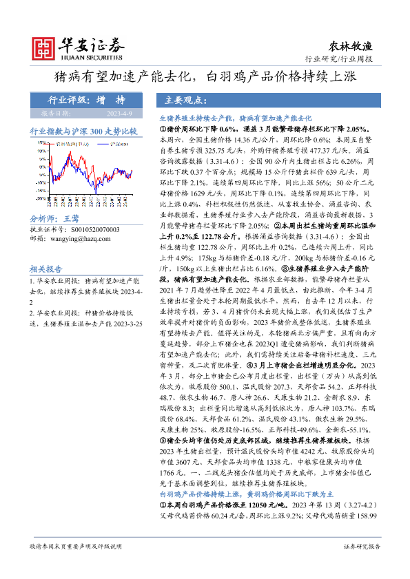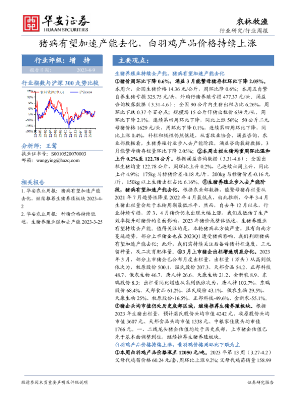 【华安证券】【20230409】20230409-华安证券-农林牧渔行业周报:猪病有望加速产能去化,白羽鸡产品价格持续上涨-44页