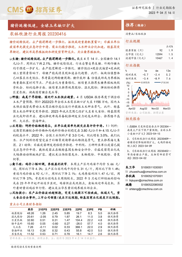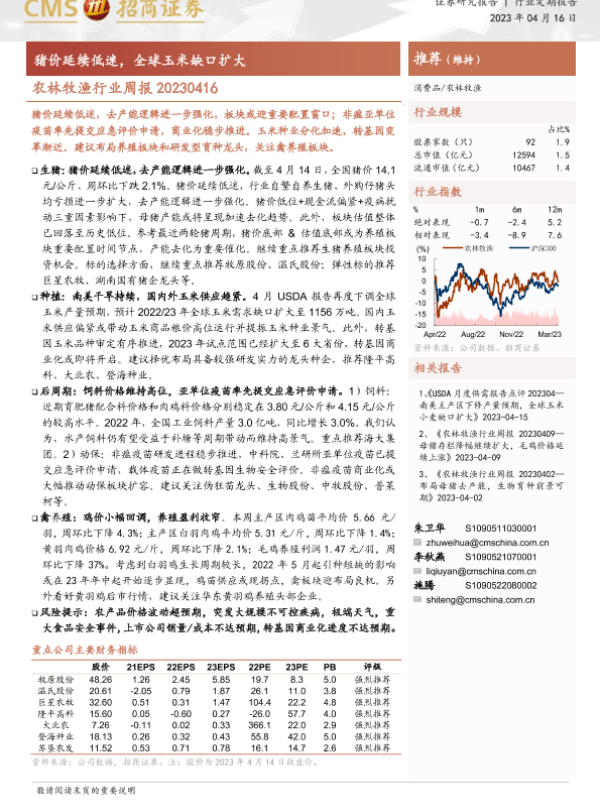 【海通证券】【20230416】20230416-招商证券-农林牧渔行业周报:猪价延续低迷,全球玉米缺口扩大-15页