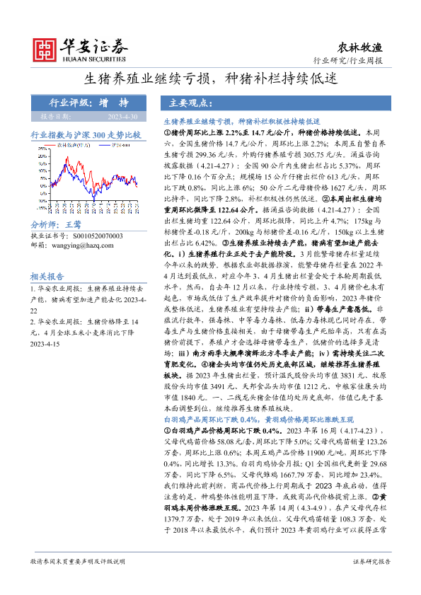 【华安证券】【20230430】20230430-华安证券-农林牧渔行业周报:生猪养殖业继续亏损,种猪补栏持续低迷-44页