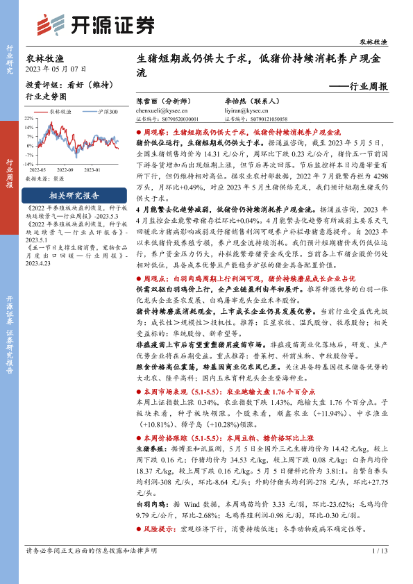 【开源证券】【20230507】20230507-开源证券-农林牧渔行业周报:生猪短期或仍供大于求,低猪价持续消耗养户现金流-13页