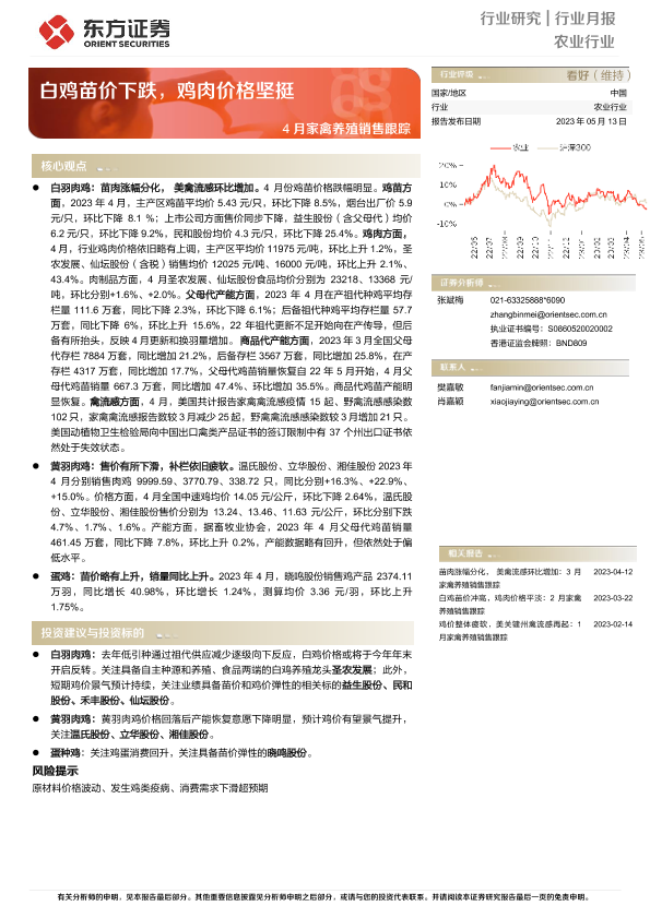 【东方证券】【20230513】20230513-东方证券-4月家禽养殖销售跟踪:白鸡苗价下跌,鸡肉价格坚挺-11页