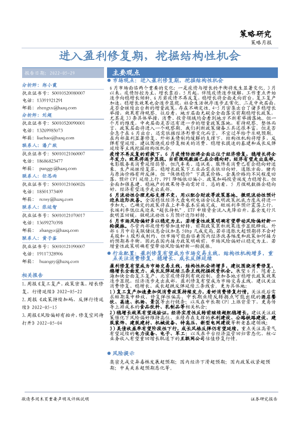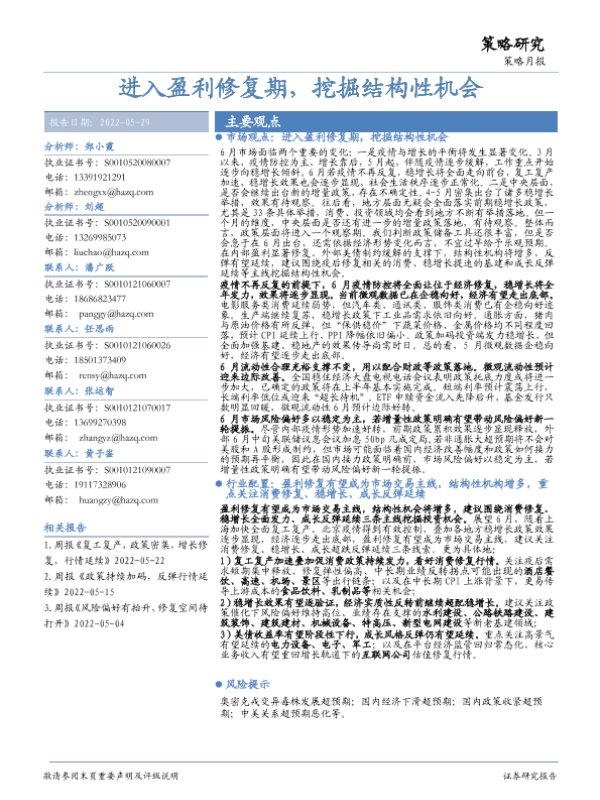 【华安证券】【20220529】策略月报:进入盈利修复期,挖掘结构性机会-28页