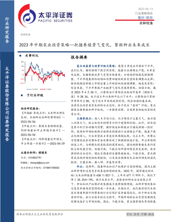 【太平洋证券】【20230513】2023年中期农业投资策略—把握养殖景气变化,紧跟种业未来成长-23页