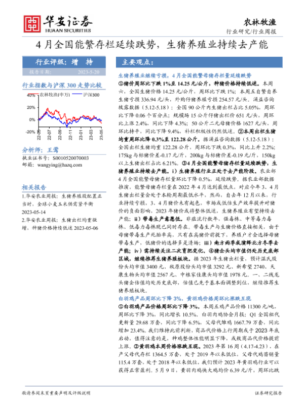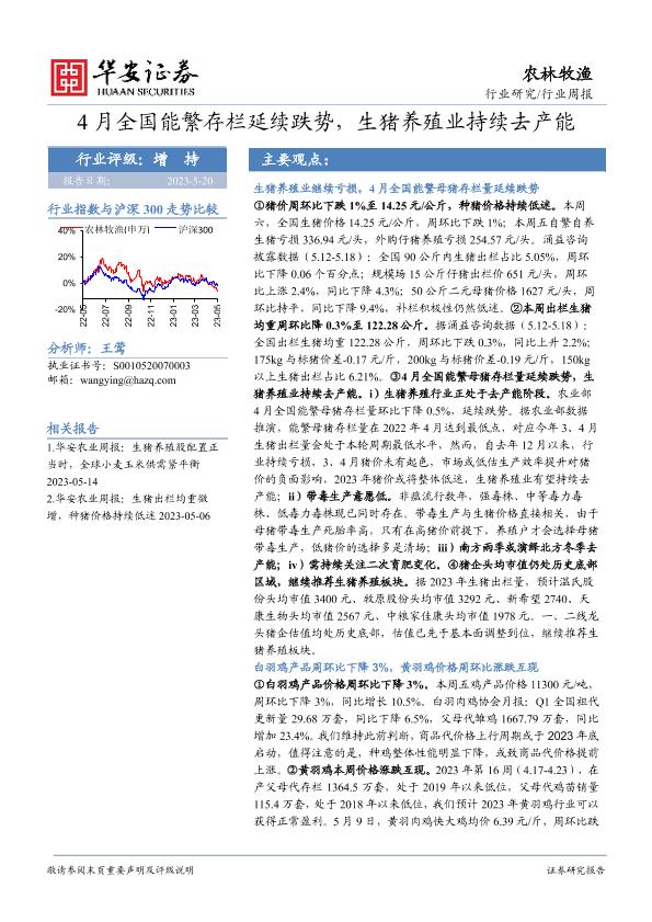 【华安证券】【20230520】20230520-华安证券-农林牧渔行业周报:4月全国能繁存栏延续跌势,生猪养殖业持续去产能-43页