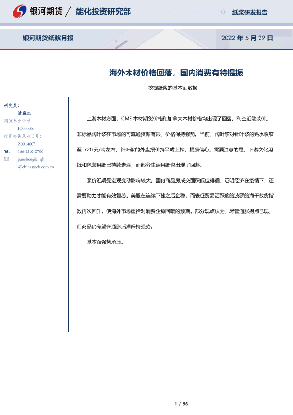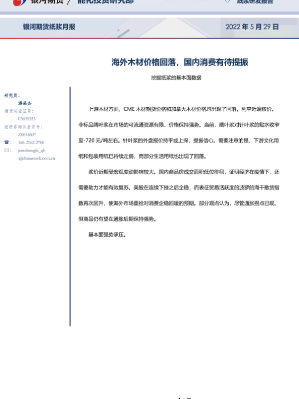【银河期货】【20220529】纸浆月报:海外木材价格回落,国内消费有待提振-96页