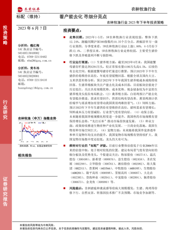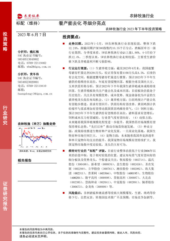 【东莞证券】【20230607】农林牧渔行业2023年下半年投资策略:看产能去化 寻细分亮点-24页
