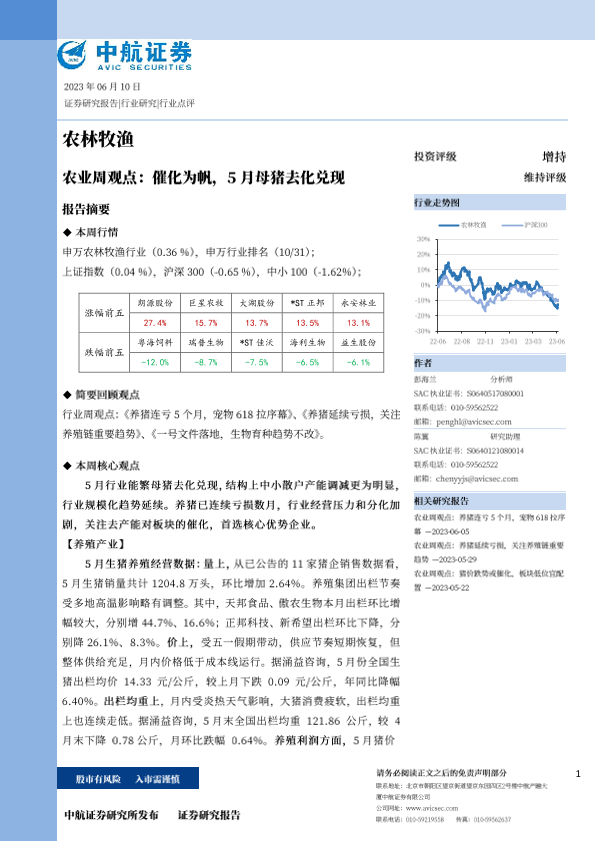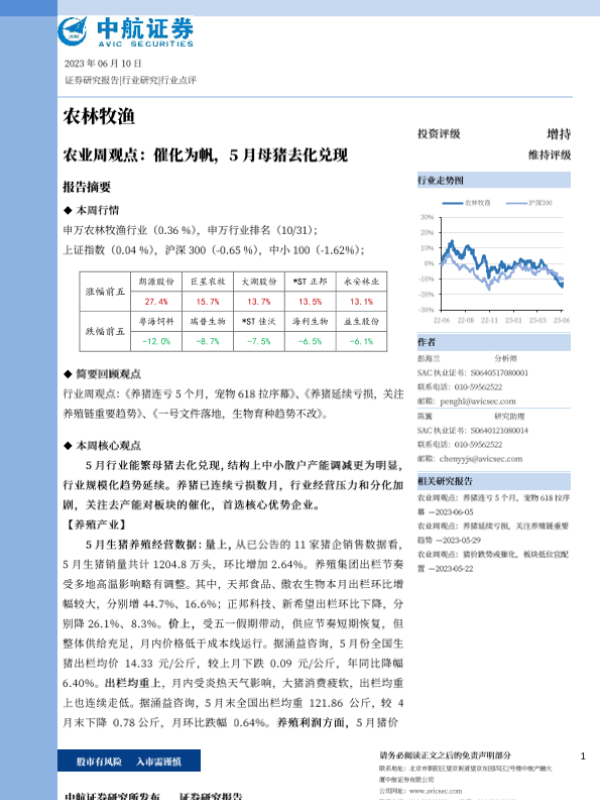 【中航证券】【20230610】农业周观点:催化为帆,5月母猪去化兑现-13页