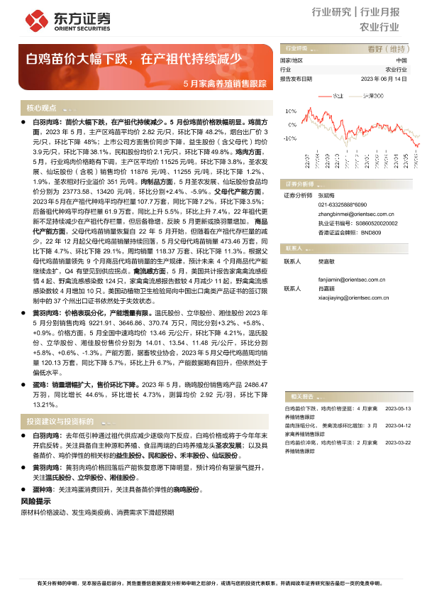 【东方证券】【20230614】农业行业行业月报:5月家禽养殖销售跟踪-白鸡苗价大幅下跌,在产祖代持续减少-10页