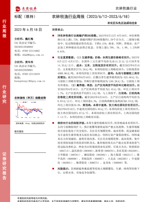 【东莞证券】【20230618】农林牧渔行业周报:农化巨头先正达成功过会-10页