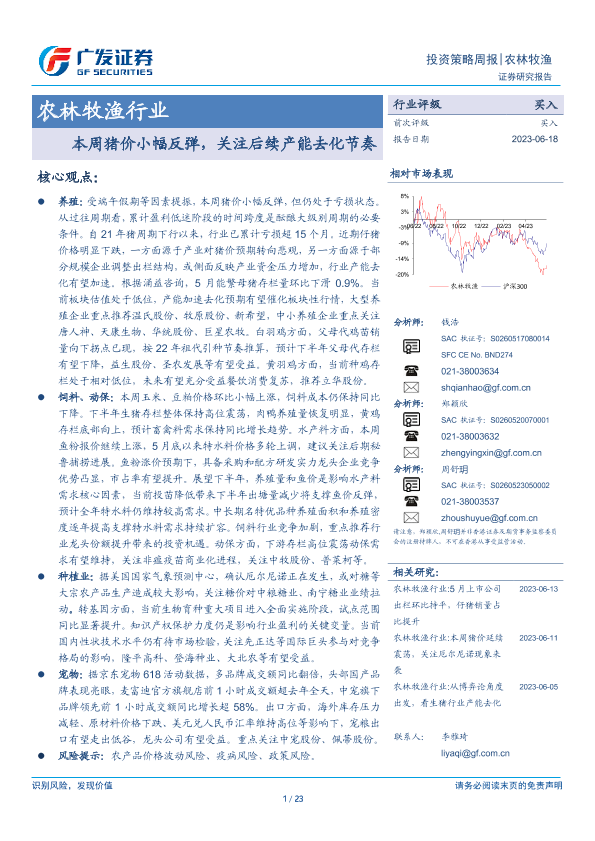【广发证券】【20230618】20230618-广发证券-农林牧渔行业投资策略周报:本周猪价小幅反弹,关注后续产能去化节奏-23页