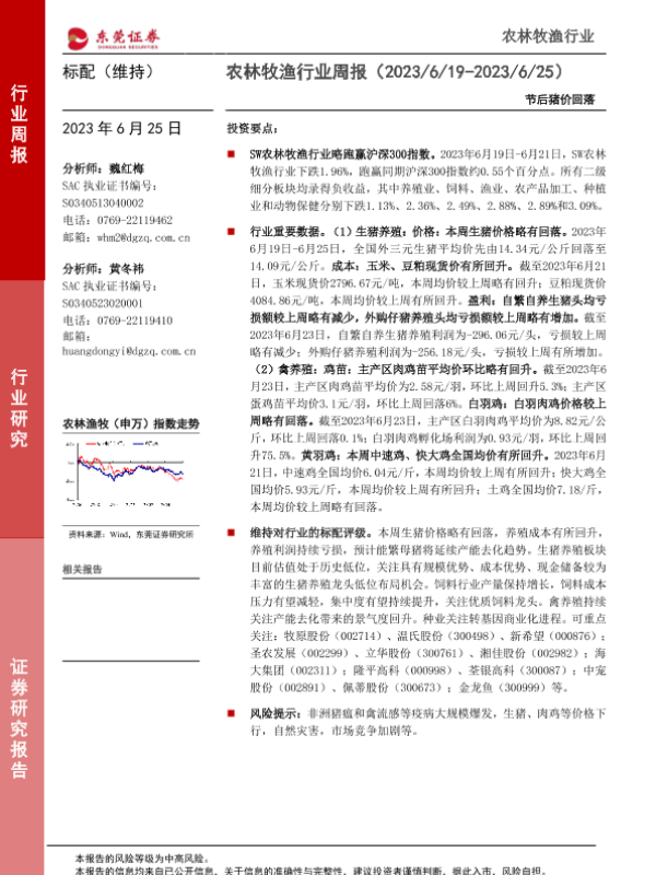 【东莞证券】【20230625】20230625-东莞证券-农林牧渔行业周报:节后猪价回落-10页
