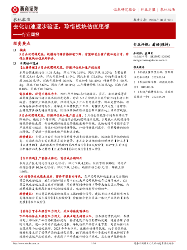 【浙商证券】【20230619】20230619-浙商证券-农林牧渔行业周报:去化加速逐步验证,珍惜板块估值底部-16页
