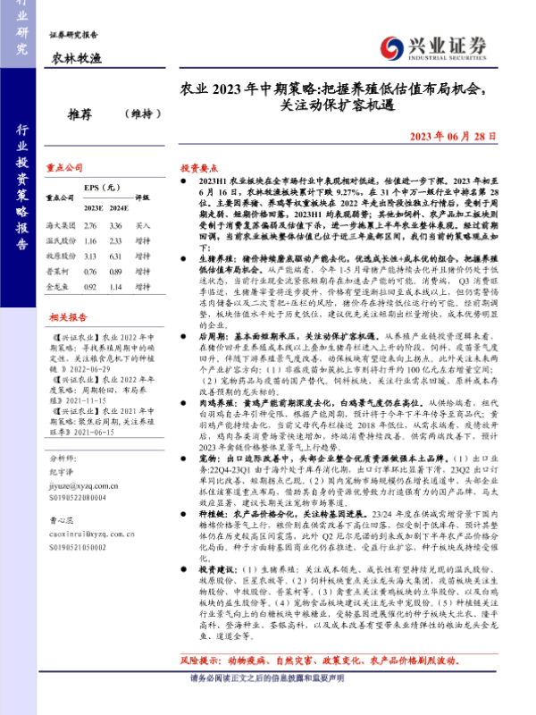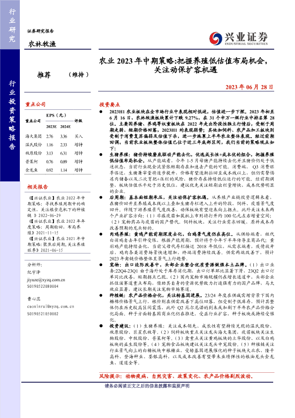【兴业证券】【20230628】农业2023年中期策略 把握养殖低估值布局机会,关注动保扩容机遇-51页