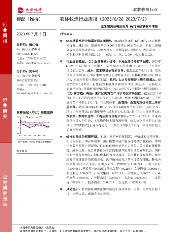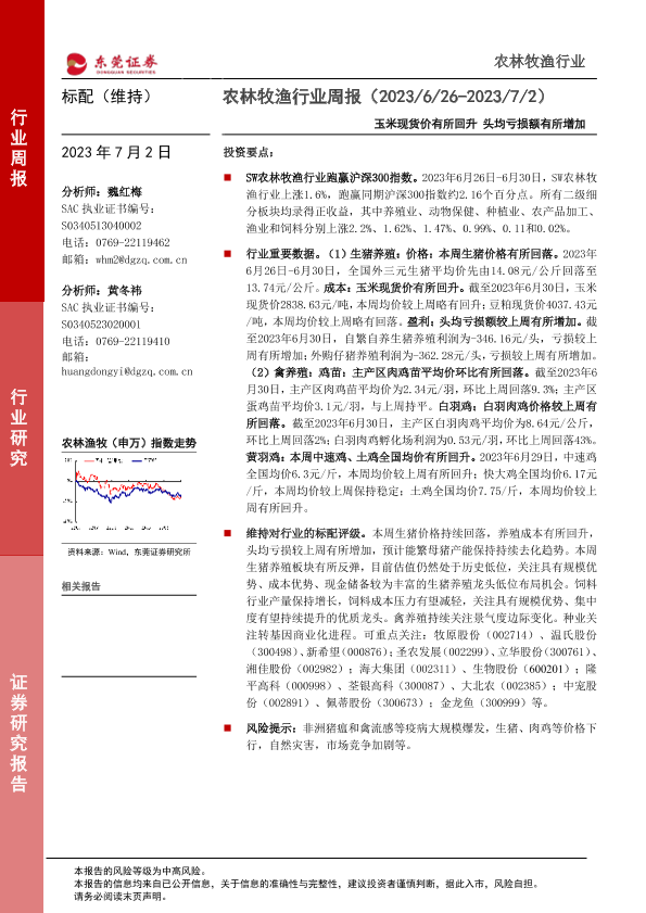 【东莞证券】【20230702】20230702-东莞证券-农林牧渔行业周报:玉米现货价有所回升 头均亏损额有所增加-10页