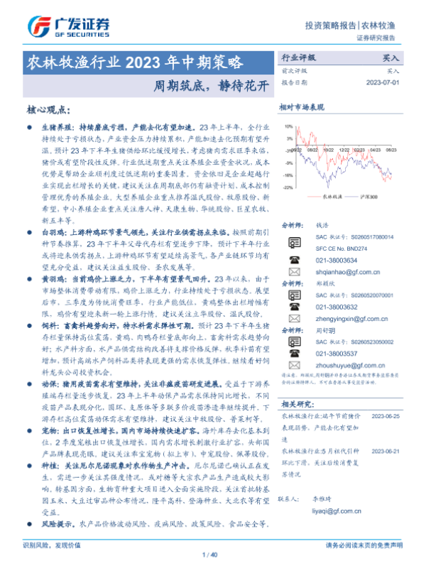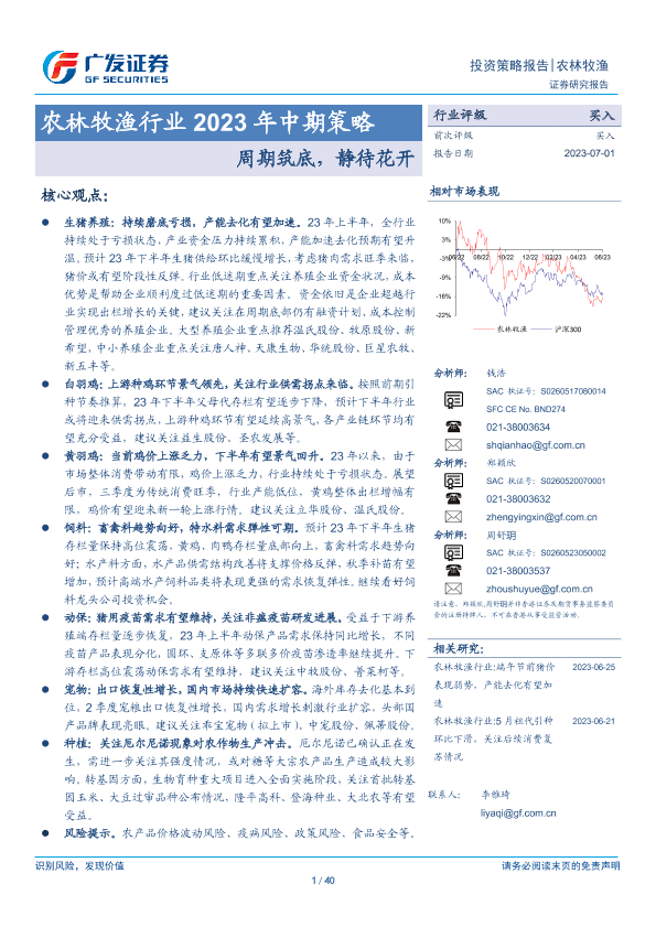 【广发证券】【20230701】农林牧渔行业2023年中期策略:周期筑底,静待花开-40页
