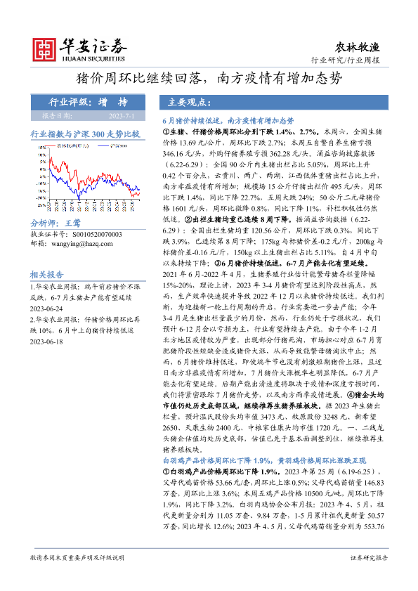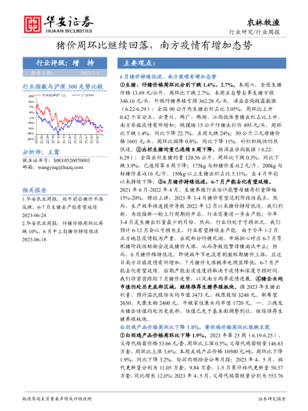 【华安证券】【20230701】20230701-华安证券-农林牧渔行业周报:猪价周环比继续回落,南方疫情有增加态势-44页