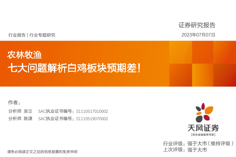 【天风证券】【20230707】20230707-天风证券-农林牧渔行业专题研究:七大问题解析白鸡板块预期差!-17页