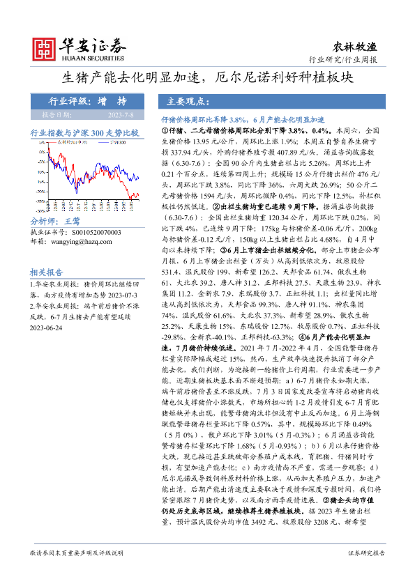 【华安证券】【20230708】20230708-华安证券-农林牧渔行业周报:生猪产能去化明显加速,厄尔尼诺利好种植板块-45页