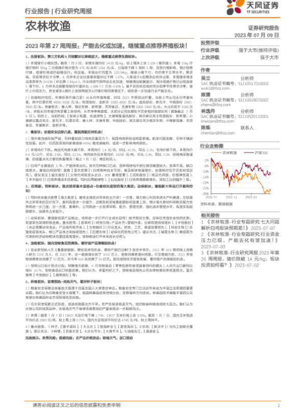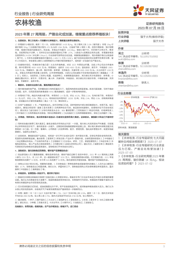 【天风证券】【20230709】农林牧渔2023年第27周周报:产能去化或加速,继续重点推荐养殖板块!-14页