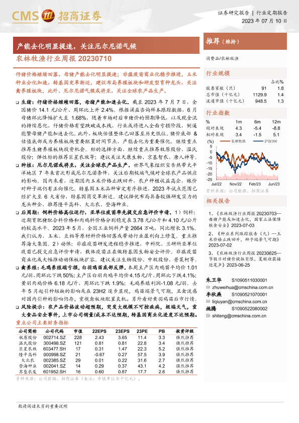 【海通证券】【20230710】20230710-招商证券-农林牧渔行业周报:产能去化明显提速,关注厄尔尼诺气候-16页