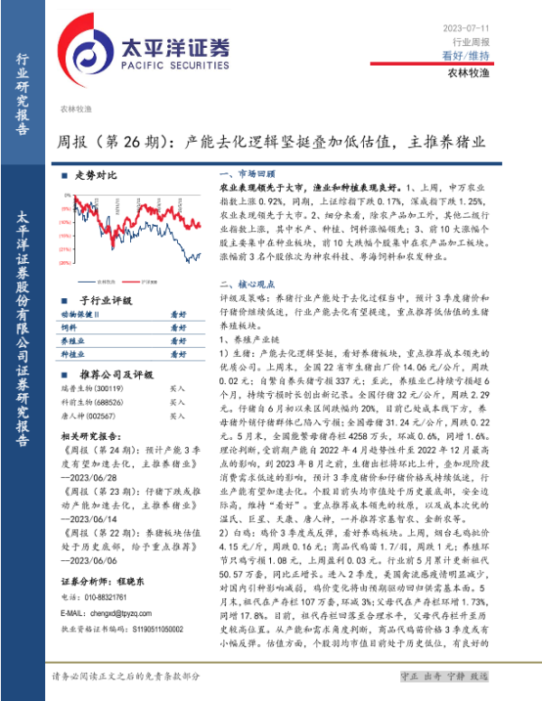 【太平洋证券】【20230711】20230711-太平洋-农林牧渔周报(第26期):产能去化逻辑坚挺叠加低估值,主推养猪业-16页