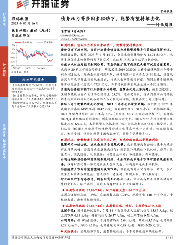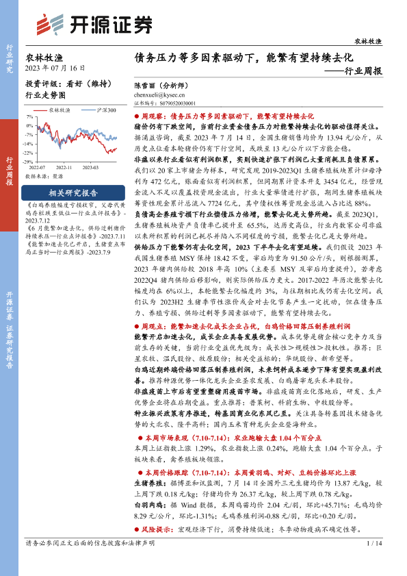 【开源证券】【20230716】20230716-开源证券-农林牧渔行业周报:债务压力等多因素驱动下,能繁有望持续去化-14页