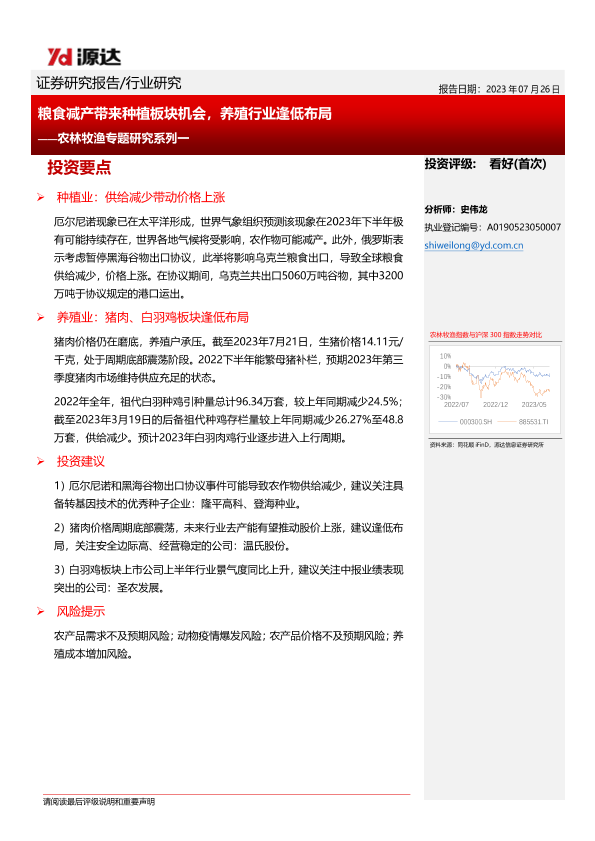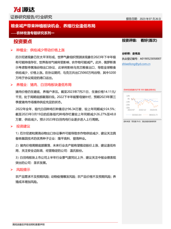 【源达信息】【20230726】20230726-源达信息-农林牧渔专题研究系列一:粮食减产带来种植板块机会,养殖行业逢低布局-11页