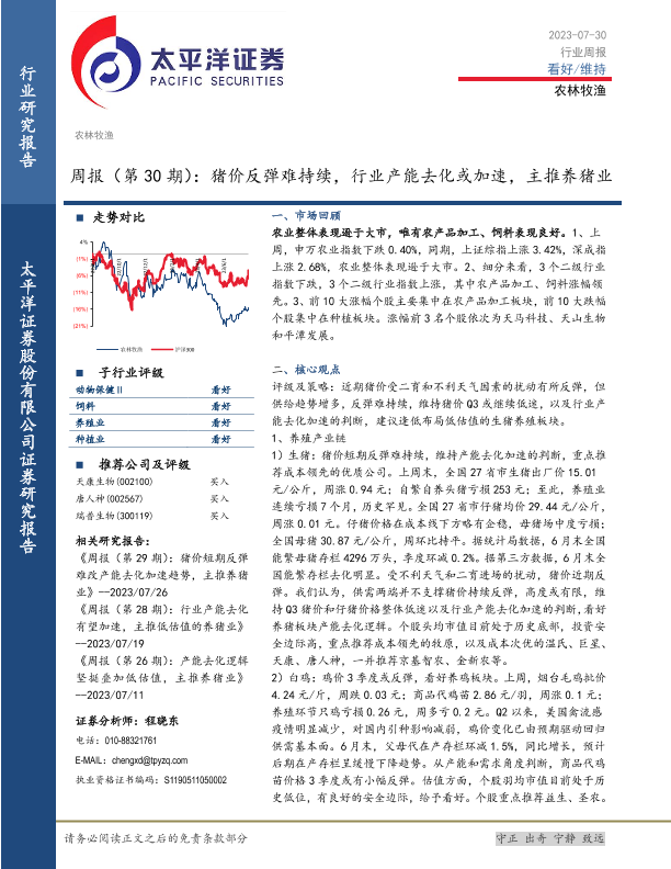 【太平洋证券】【20230730】20230730-太平洋-农林牧渔周报(第30期):猪价反弹难持续,行业产能去化或加速,主推养猪业-17页