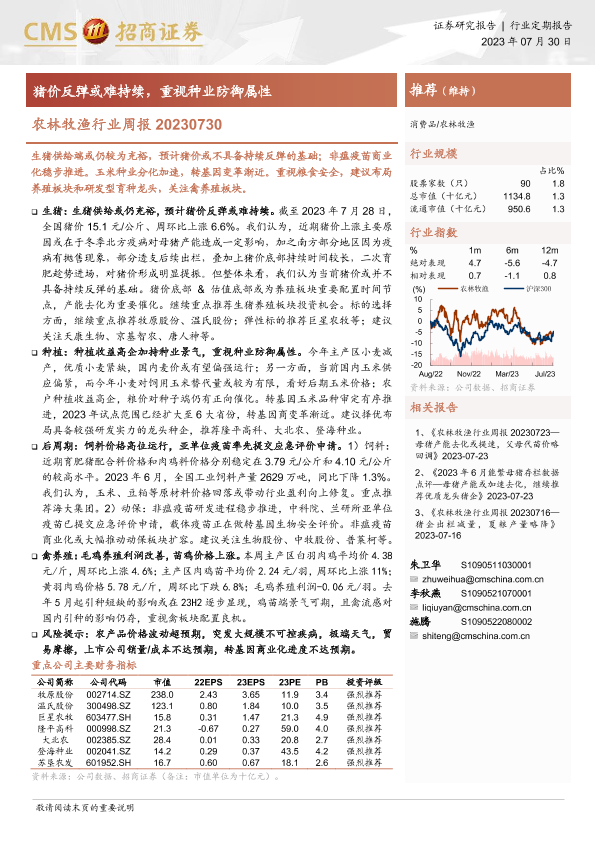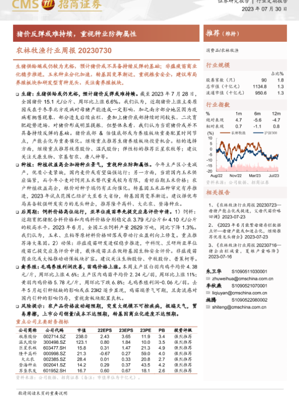 【海通证券】【20230730】20230730-招商证券-农林牧渔行业周报:猪价反弹或难持续,重视种业防御属性-17页