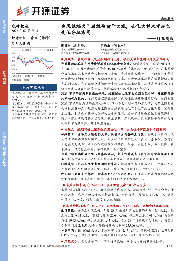 【开源证券】【20230730】20230730-开源证券-农林牧渔行业周报:台风极端天气致短期猪价大涨,去化大势未变建议逢低分批布局-15页