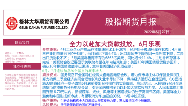 【格林大华期货】【20220527】股指期货月报:全力以赴加大贷款投放,6月乐观-52页