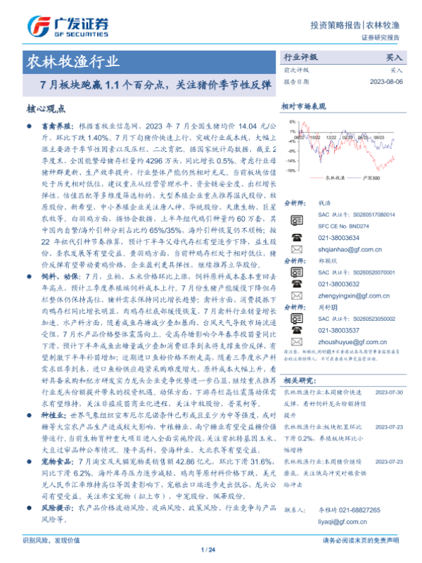 【广发证券】【20230806】20230806-广发证券-农林牧渔行业投资策略报告:7月板块跑赢1.1个百分点,关注猪价季节性反弹-24页