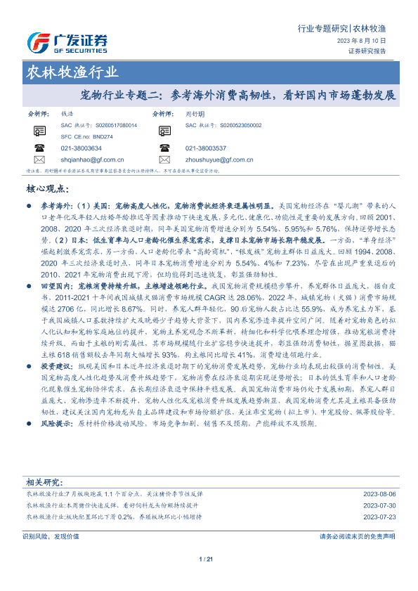 【广发证券】【20230810】农林牧渔行业:宠物行业专题二:参考海外消费高韧性,看好国内市场蓬勃发展-21页