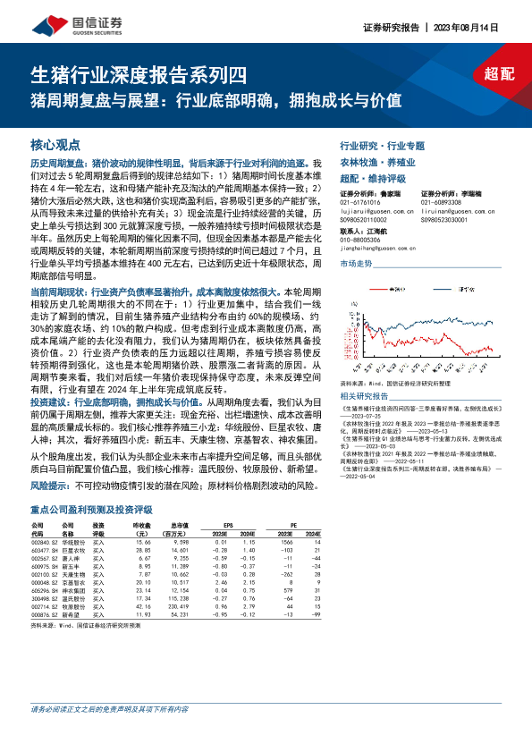 【国信证券】【20230814】20230814-国信证券-生猪行业深度报告系列四:猪周期复盘与展望:行业底部明确,拥抱成长与价值-64页