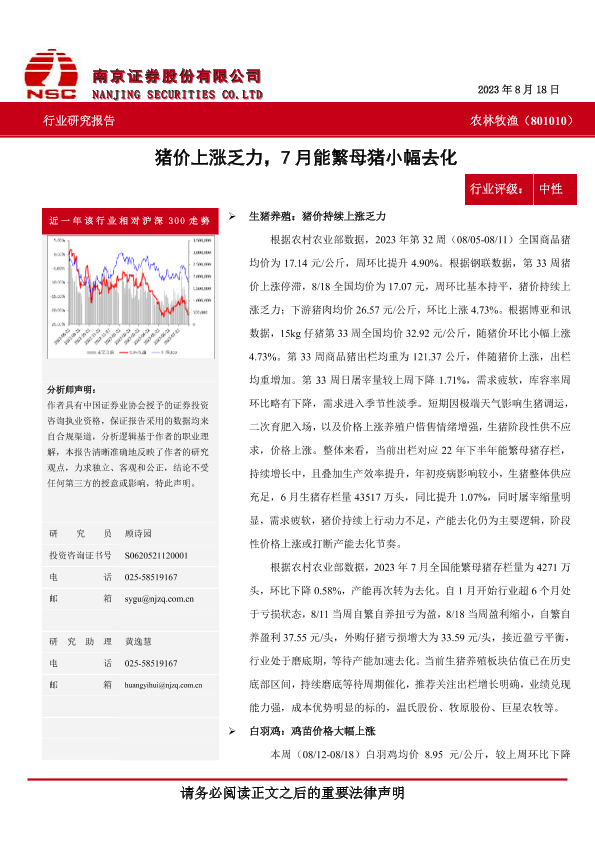 【南京证券】【20230818】农林牧渔:猪价上涨乏力,7月能繁母猪小幅去化-11页