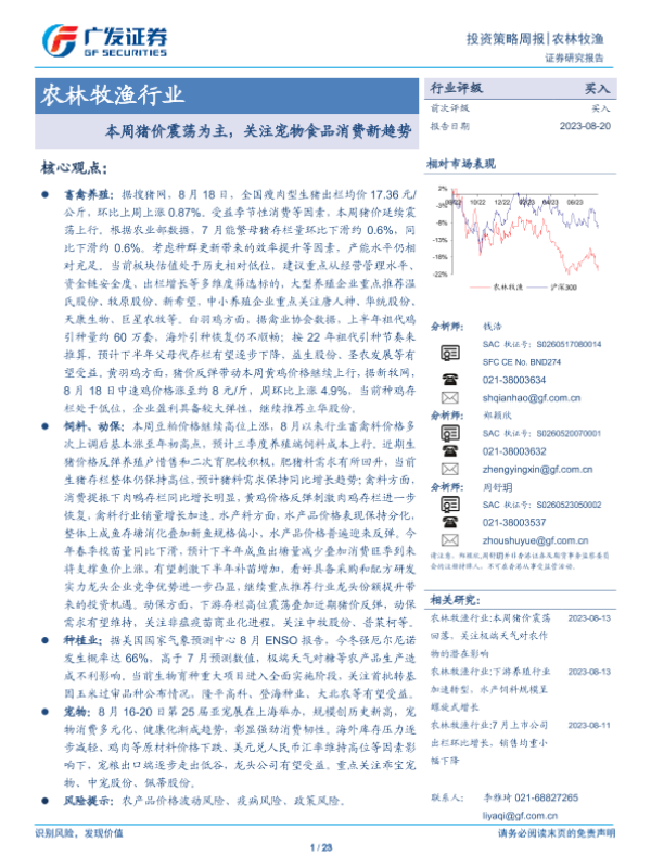 【广发证券】【20230820】20230820-广发证券-农林牧渔行业投资策略周报:本周猪价震荡为主,关注宠物食品消费新趋势-23页
