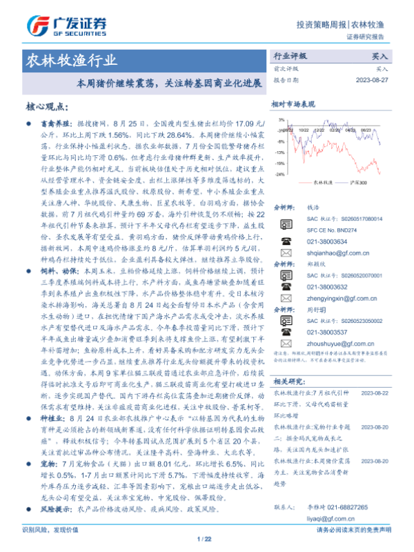 【广发证券】【20230827】20230827-广发证券-农林牧渔行业投资策略周报:本周猪价继续震荡,关注转基因商业化进展-22页