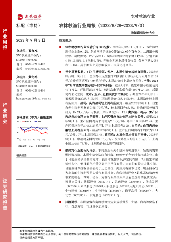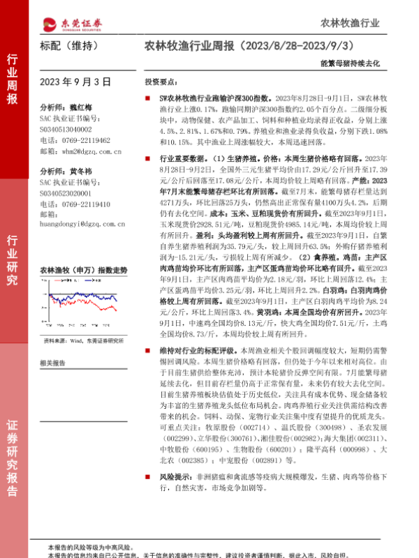 【东莞证券】【20230903】20230903-东莞证券-农林牧渔行业周报:能繁母猪持续去化-10页