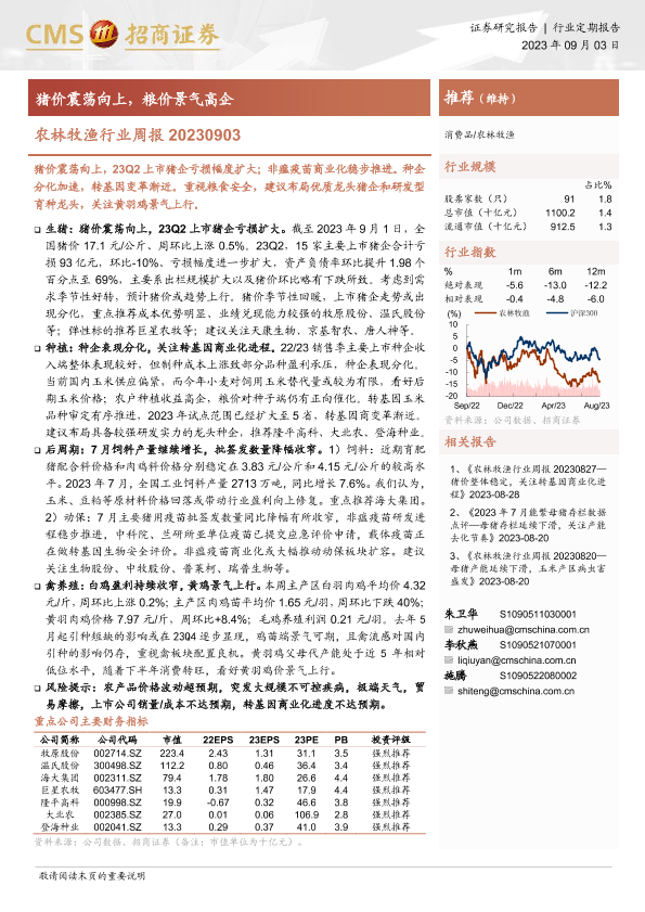 【海通证券】【20230903】20230903-招商证券-农林牧渔行业周报:猪价震荡向上,粮价景气高企-18页
